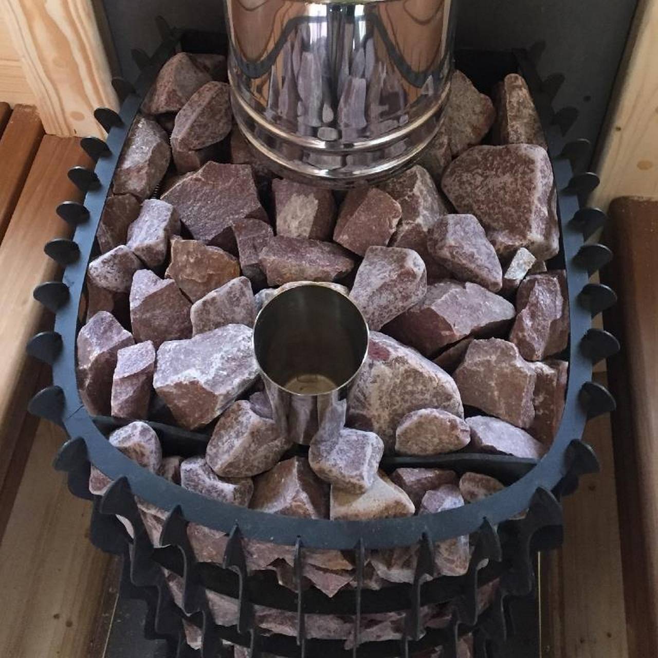 Чтобы малиновый кварцит для бани прослужил не менее 3 лет, рекомендуется приобретать шлифованный материал. Колотые необработанные булыжники имеют тонкие острые края, которые крошатся при температурных перепадах, засоряя вентиляционные ходы между камнями.