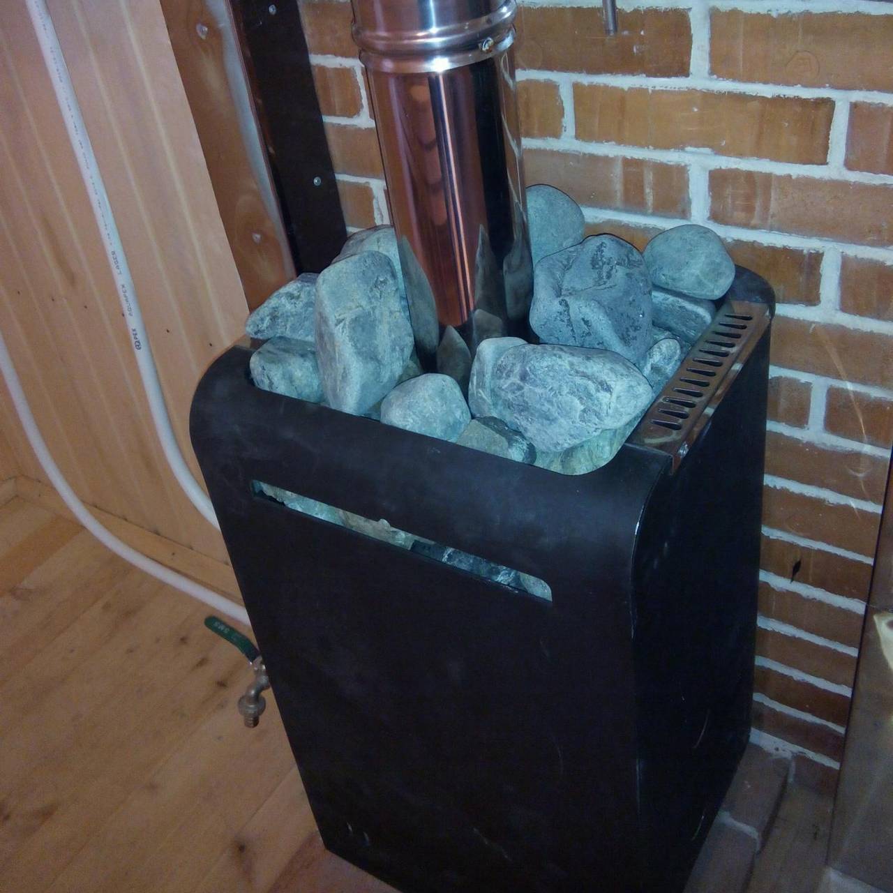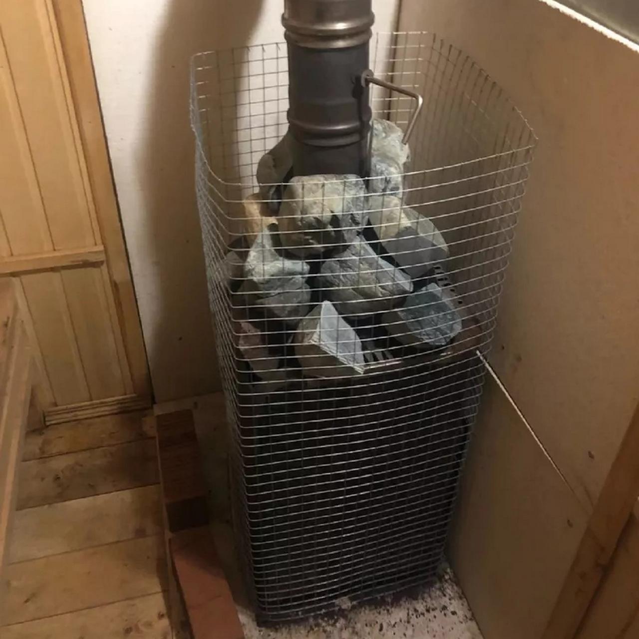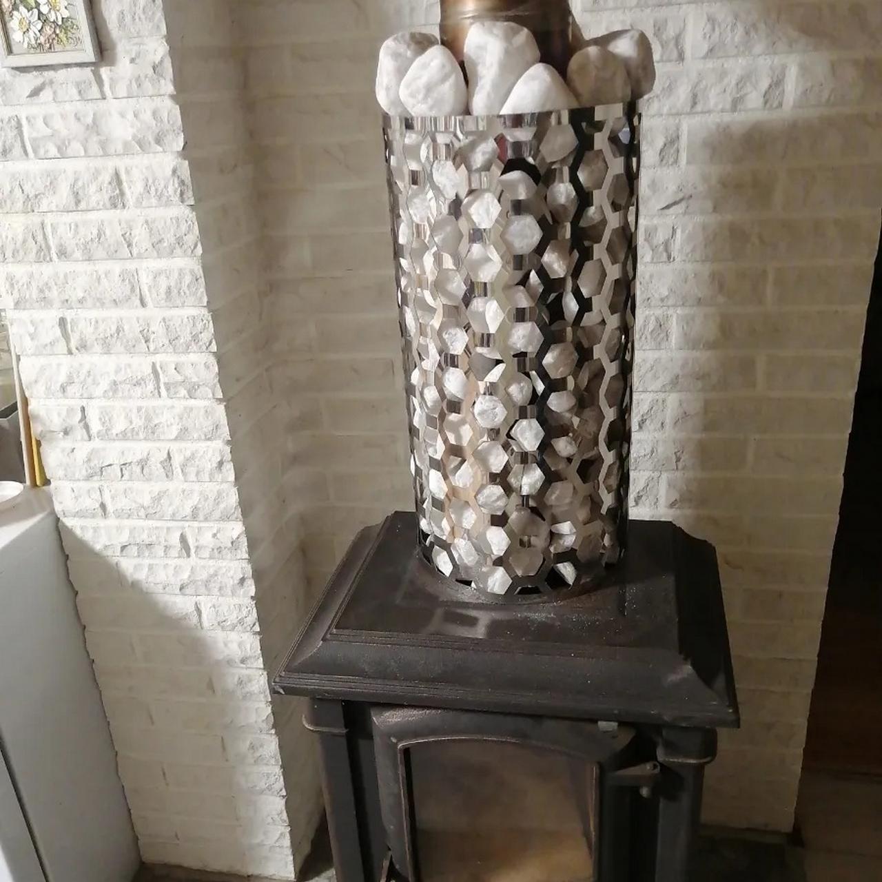 - Размеры: От размера камней зависит их время нагревания. Чем объемнее материал, тем больше энергии требуется. Для банной печи на дровах можно использовать булыжники побольше, так как открытый огонь тепло выделяет обильно. Электрические печи удобнее дровяных, им не нужен дымоход. Однако тепловой энергии они выделяют намного меньше. Оптимальные размеры используемых камушков 5-7 см.