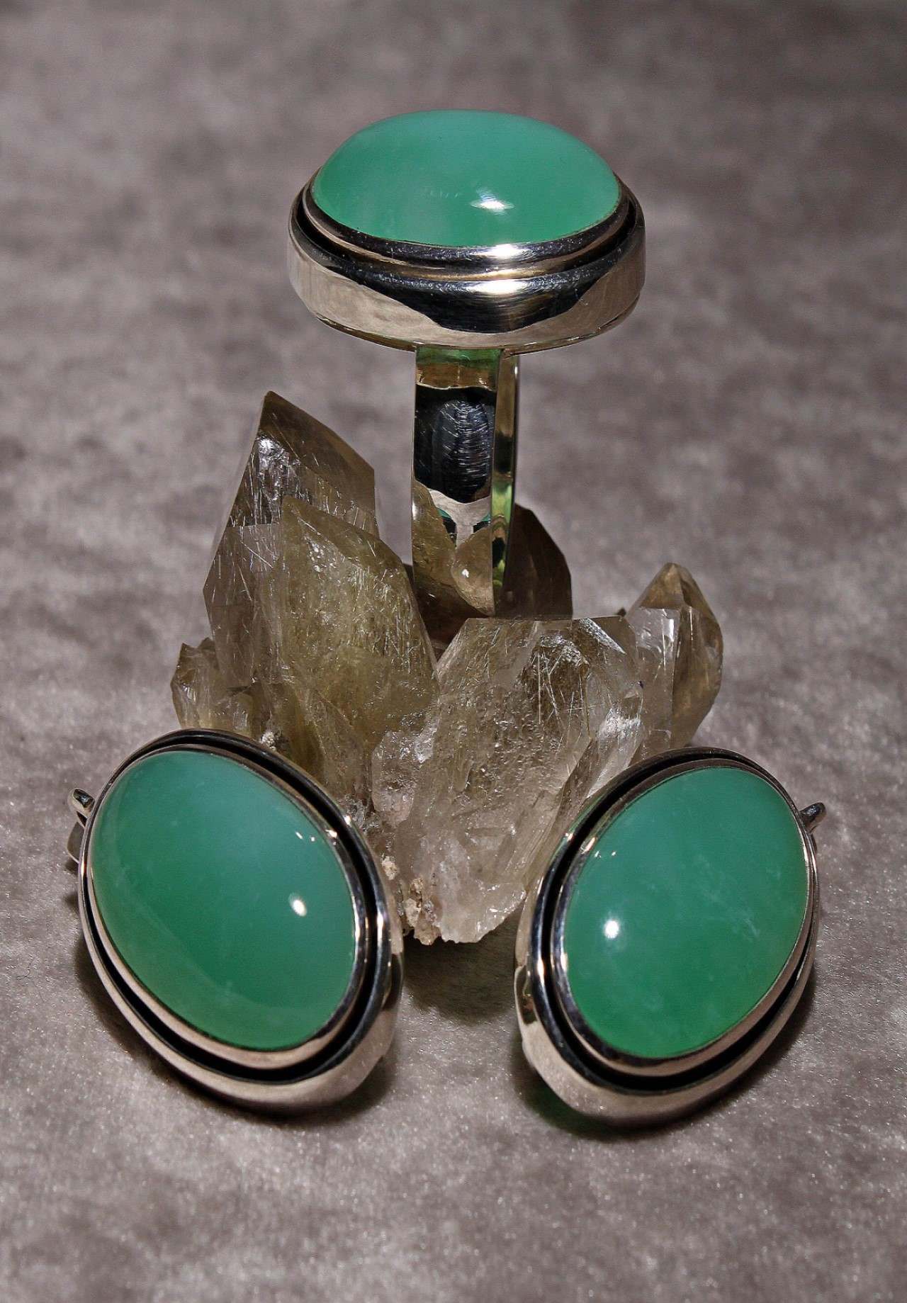 Хризопраз – это красивый камень, который используется для изготовления ювелирных изделий, таких как серьги, кольца, браслеты, колье, броши. Минерал хорошо сочетается с золотом, серебром и платиной.