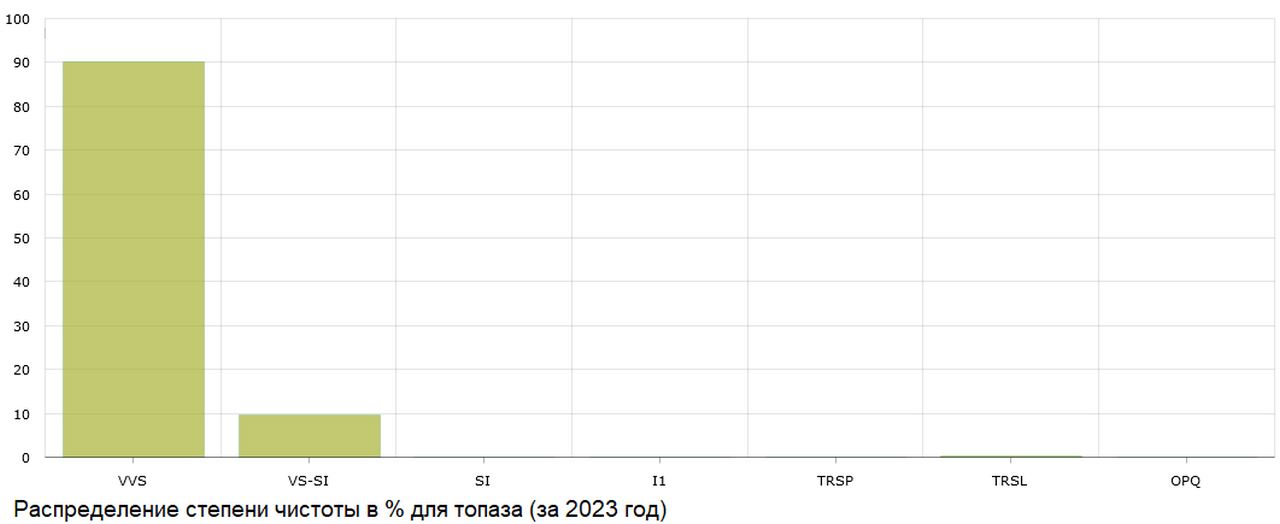 Динамика цен на топазы за последние годы была неоднозначной. В 2019 году цены выросли на 10-15%. Это было связано с модой на голубые самоцветы. В 2020 году стоимость уменьшалась на 5-10% из-за пандемии COVID-19, которая привела к снижению спроса на ювелирные изделия. В 2021 году цены восстановились и в 2022 году выросли на 5-10%.