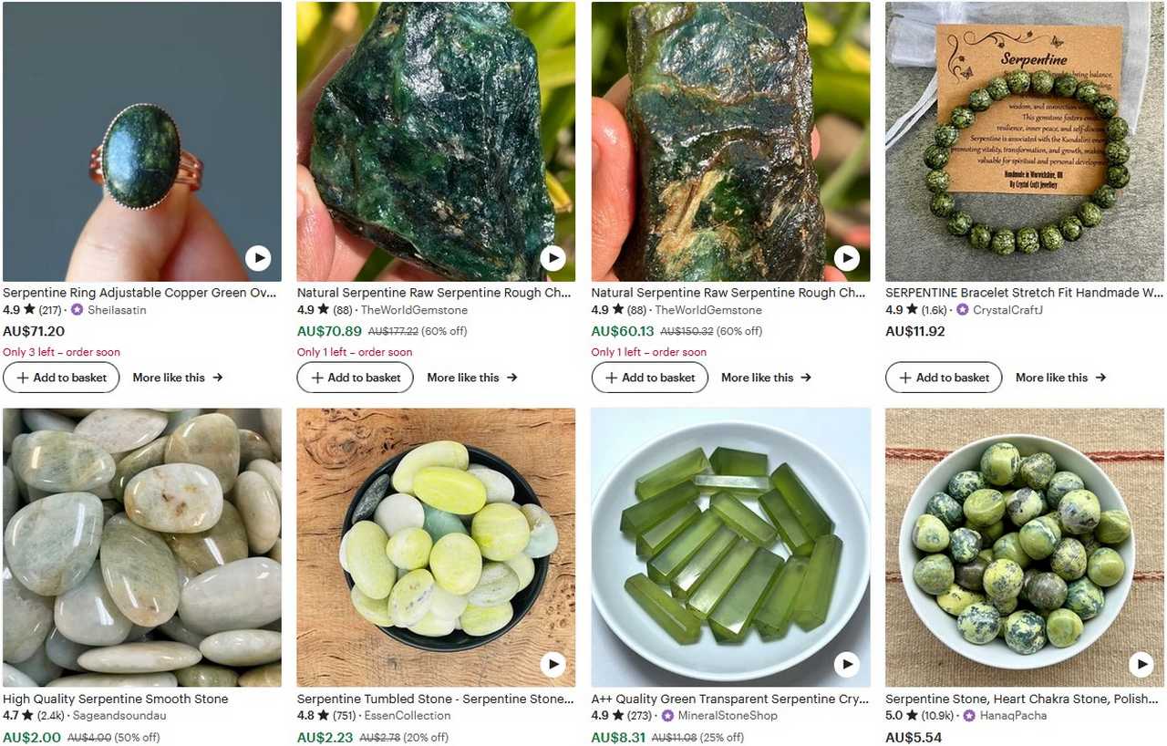 Обычный змеевик относительно недорог. Украшения из натурального камня стоят до 10 долларов. Статуэтки, шкатулки, сувениры оцениваются в зависимости от размера и сорта серпентинита. Это может быть и 5 долларов, и 50. Купить изделия можно через интернет, либо в специализированных минералогических магазинах.